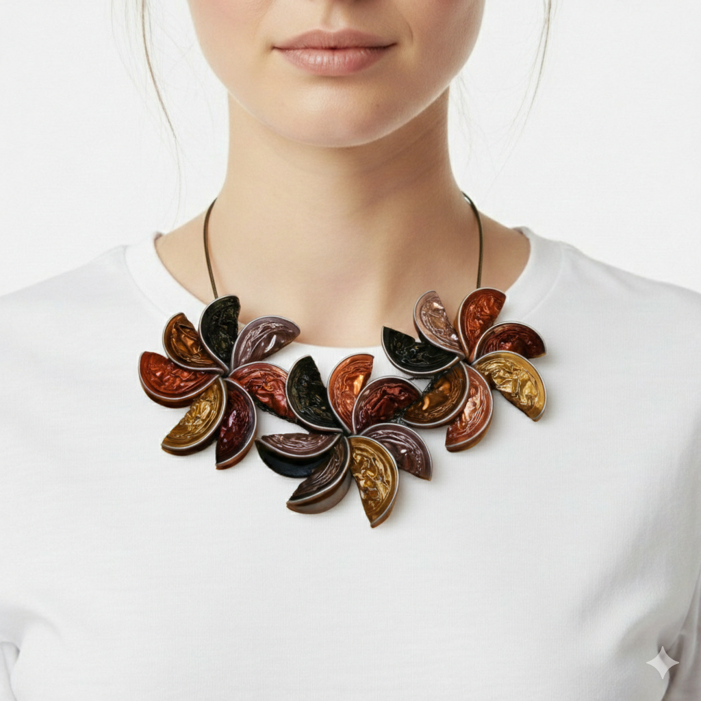 3 Flores Caps halsketting – Handgemaakt Kunstwerk van Zóia